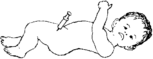· Inject in the correct place. Do not inject infants and small children in the buttock. Instead, inject them in the upper, outer part of the thigh. (Notice that this child was injected too low on the buttock, where it is possible to damage the nerve.)