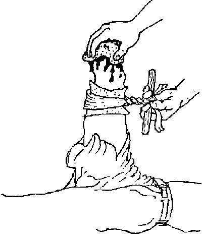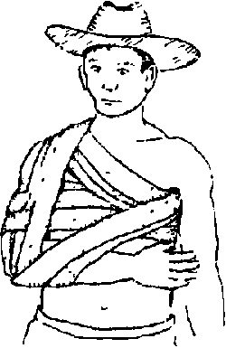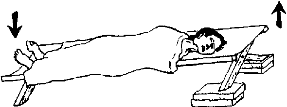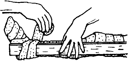 A broken upper leg or hip often needs special attention. It is best to splint the whole body like this: