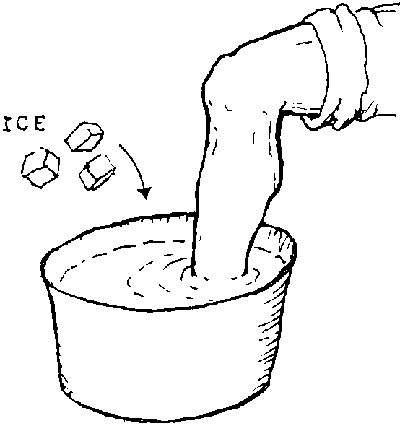 7. Also, ice helps to reduce pain and slow the poison. Wrap the arm or leg with a plastic sheet and a thick cloth. Then pack crushed ice around it. (Caution: Too much cold can damage skin and flesh. When it is getting too cold it begins to ache. So let the person decide when to remove the ice for a few minutes.)