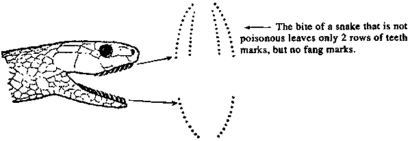 When someone has been bitten by a snake, try to find out if the snake was poisonous or harmless. Their bite marks are different: