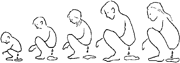 the floor. In this way, a bit of the man's stool gets on the child, too.