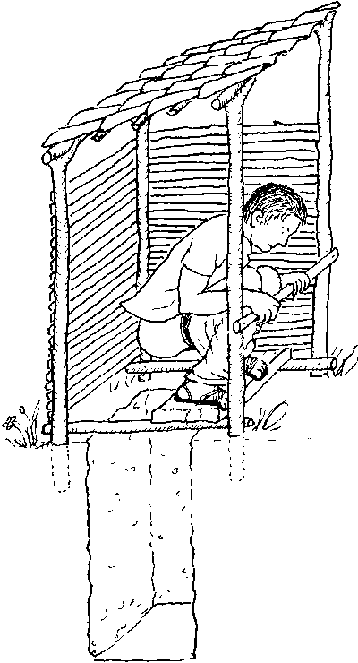 3. Build latrines (out-houses, toilets) so pigs and other animals cannot reach the human waste. A deep hole with a little house over it works well. The deeper the hole, the less problem there is with flies and smell.