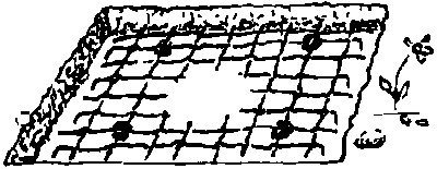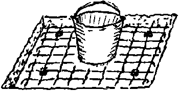 3. Put the grid in the pit. Bend the ends of the wires, or put a small stone at each corner, so that the grid stands about 3 cm. off the ground.