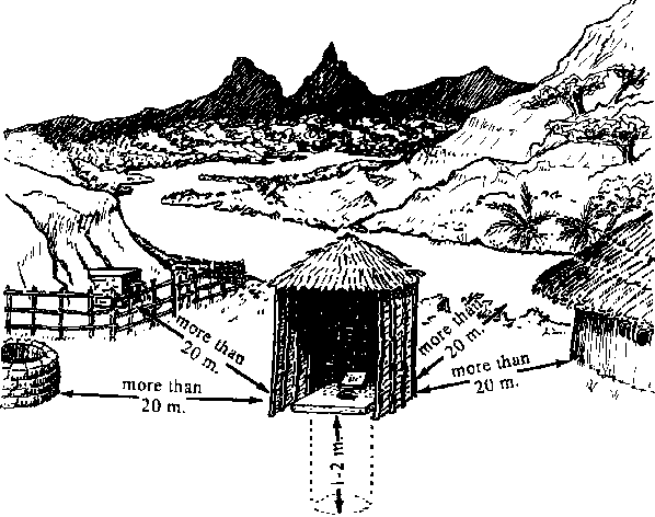Out-houses should be built at least 20 meters from homes or the source of water.