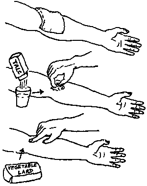 · It is best not to use talc (talcum powder), but if you do, wait until the rash is gone.