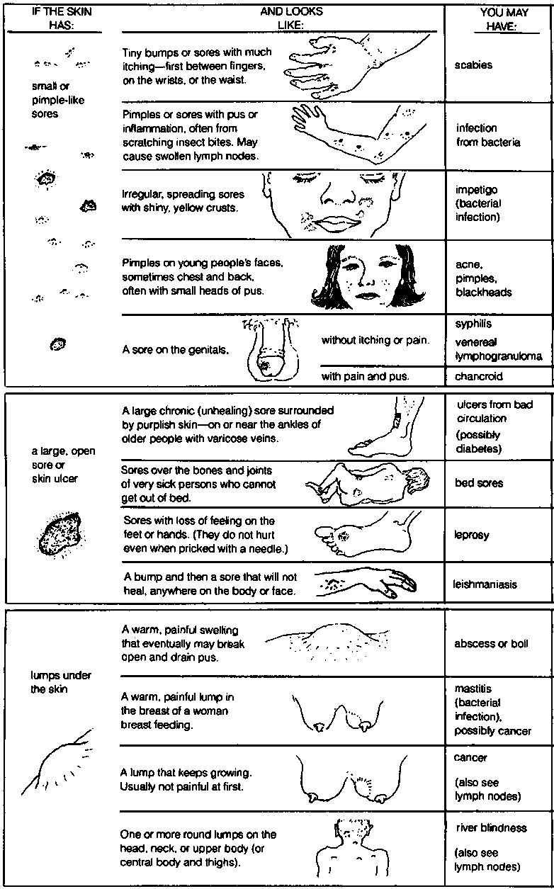 This chapter deals only with the more common skin problems in rural areas. However, there are hundreds of diseases of the skin. Some took so much alike that they are hard to tell apart - yet their causes and the specific treatments they require may be quite different.