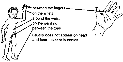 Scabies is especially common in children. It causes very itchy little bumps that can appear all over the body, but are most common: