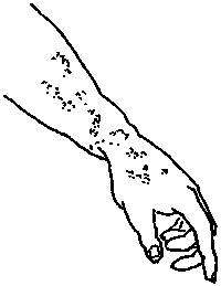 · Thick, rough patches of reddish or blue-gray skin covered with whitish or silver-colored scales. The patches appear most commonly in the parts shown in the drawings.· The condition usually lasts a long time or keeps coming back. It is not an infection and is not dangerous.