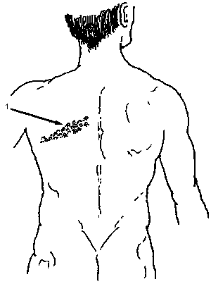 A line or patch of painful blisters that suddenly appears on one side of the body is probably shingles. It is most common on the back, chest, neck, or face. The blisters usually last 2 or 3 weeks, then go away by themselves. Sometimes the pain continues or returns long after the blisters are gone. (1)