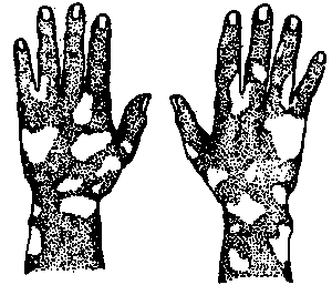 In some persons, certain areas of the skin lose their natural color (pigment). Then white patches appear. These are most common on the hands, feet, face, and upper body. This loss of normal skin color - called vitiligo - is not an illness. It can be compared to white hair in older people. No treatment helps or is needed, but the white skin should be protected from sunburn - with clothing or an ointment of zinc oxide. Also, special coloring creams can help make the spots less noticeable.