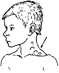 Also, tuberculosis sometimes infects the lymph nodes - most often those of the neck or in the area behind the collar bone, between the neck and the shoulder. The nodes become large, open, drain pus, seal closed for a time, and then open and drain again. Usually they are not painful.