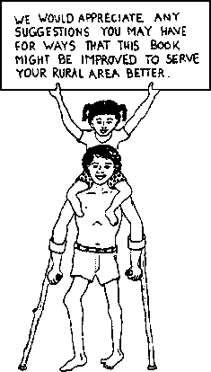 REQUEST FOR YOUR SUGGESTIONS, CRITICISMS, AND IDEAS This book is an attempt to pull together basic information to help you meet the needs of village children with a wide range of disabilities. We have done the best we can, given our limitations. We know the book is not perfect and that it has weaknesses and perhaps some mistakes. We urge anyone reviewing or using the book, whether a disabled person, parent, health worker, or professional, to send us all your criticism and suggestions. Help us to make improvements for a later edition. Thank you.