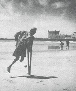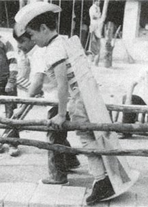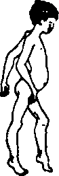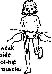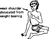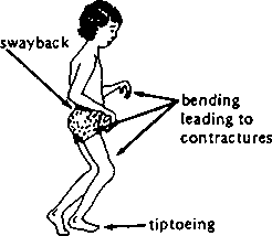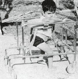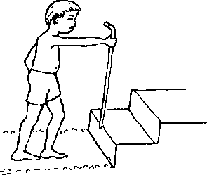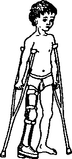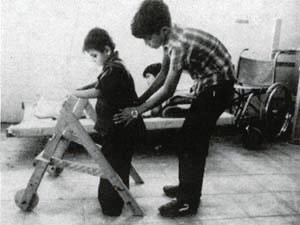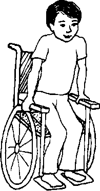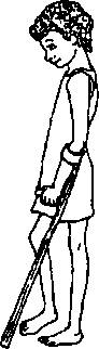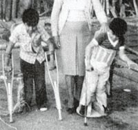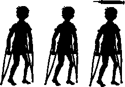 SWING THROUGH WALKING Although at first they may be afraid to try it, many of these children can learn to swing through between their crutches, like this.
