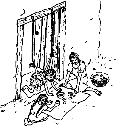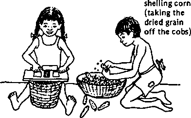 The basket between her legs held her knees apart, and the shelling of the corn strengthened her arms, gave her practice gripping, and improved her coordination and control.