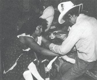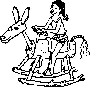 The rocking horse kept her knees apart, strengthened her hands, and helped her improve her balance. Maricela loved her horse and sometimes rocked for an hour or more. When she got off, it seemed she could walk better. After Maricela had learned to ride the rocking horse, she wanted to ride the real thing. She begged and begged. So one day her father let her ride with him to the cornfield on his donkey. He suggested she ride in front of him where he could hold her. But she insisted on riding behind, like other children do. So he fixed some stirrups and let her ride behind. Her legs were spread wide and she hung on tightly. It was excellent therapy-but nobody called it that.