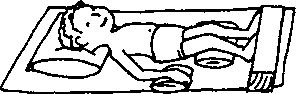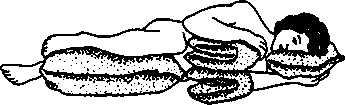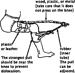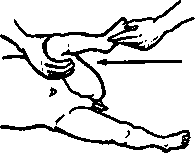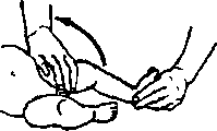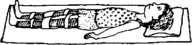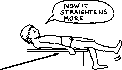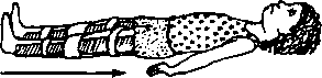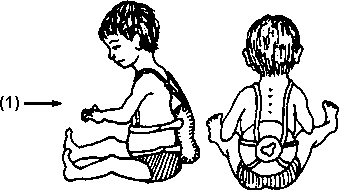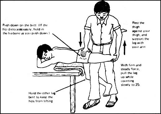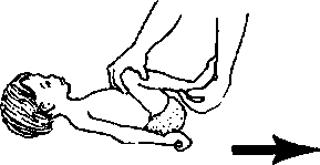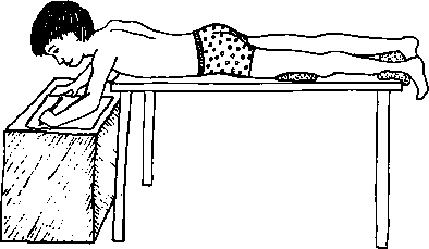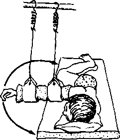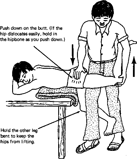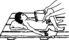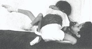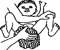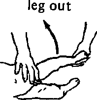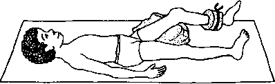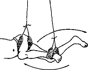 Or have the child lie on his back and move his leg to the side. You can hang the leg like this so that he can move it more easily. |