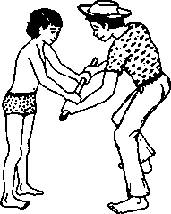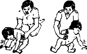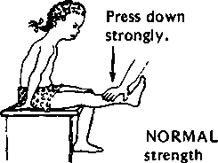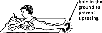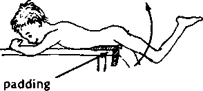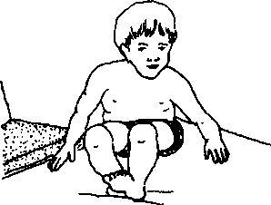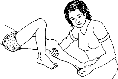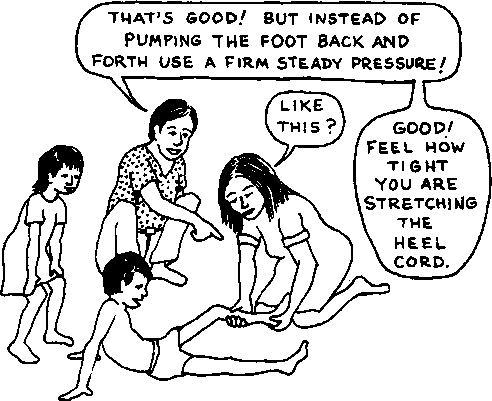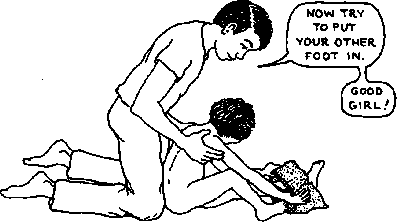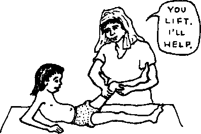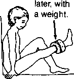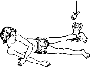 If the child cannot raise his leg by himself, help him a little, but be sure that he uses as much strength as he can. |