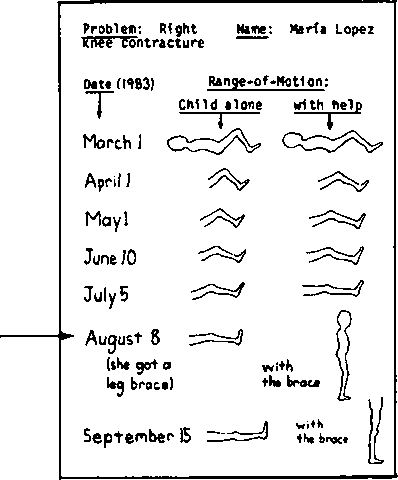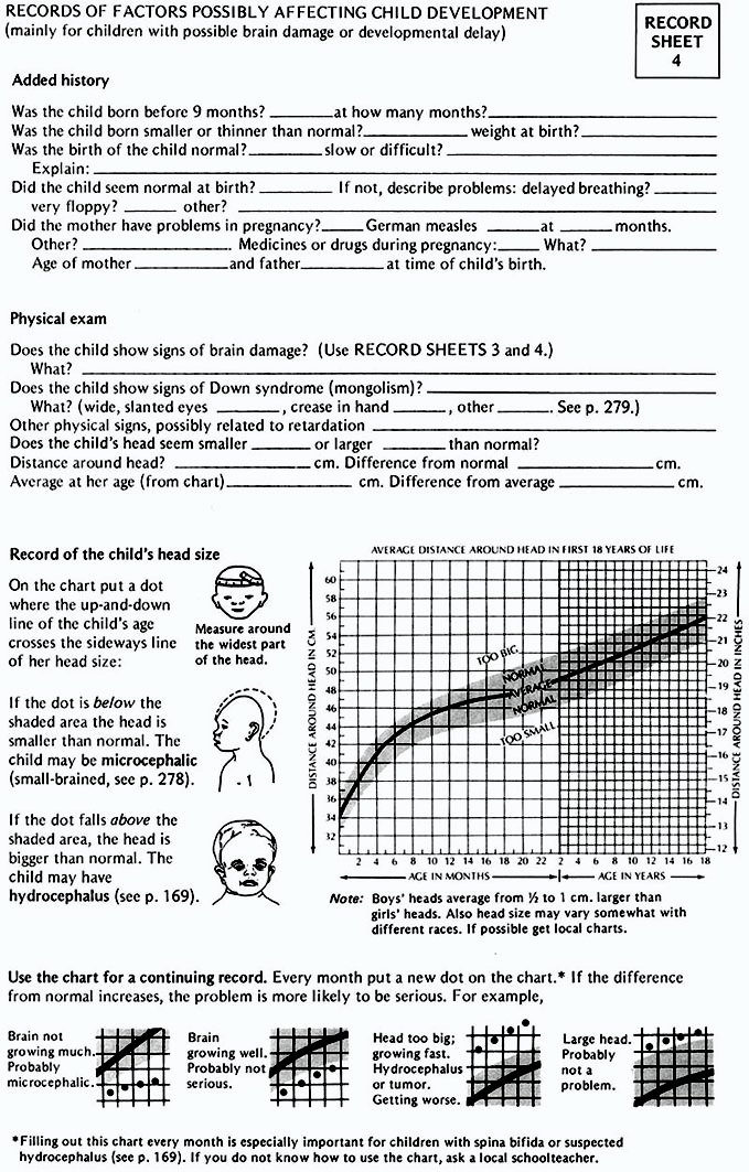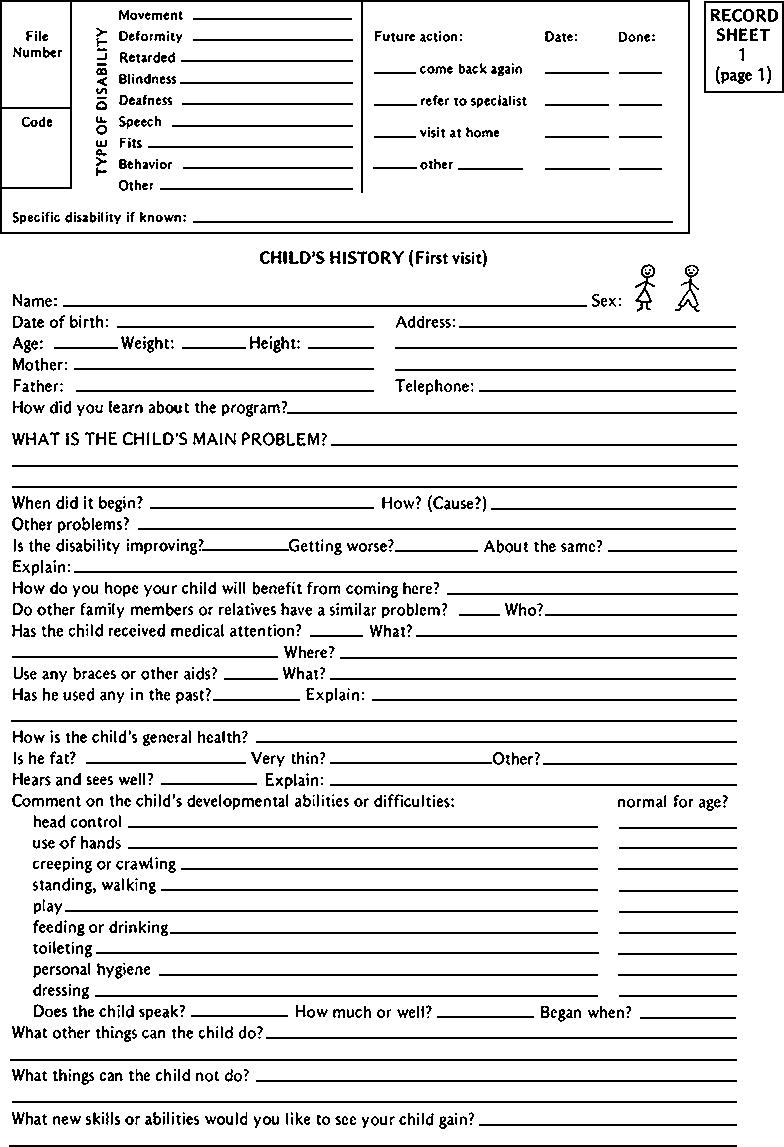 In Project PROJIMO in Mexico, the village rehabilitation team keeps a big file box with copies of the different pages and chapters that they have found most useful for giving to families. (In fact, the exercise sheets at the end of Chapter 42 were originally prepared separately to give to families. Later, we decided to include them in this book.)