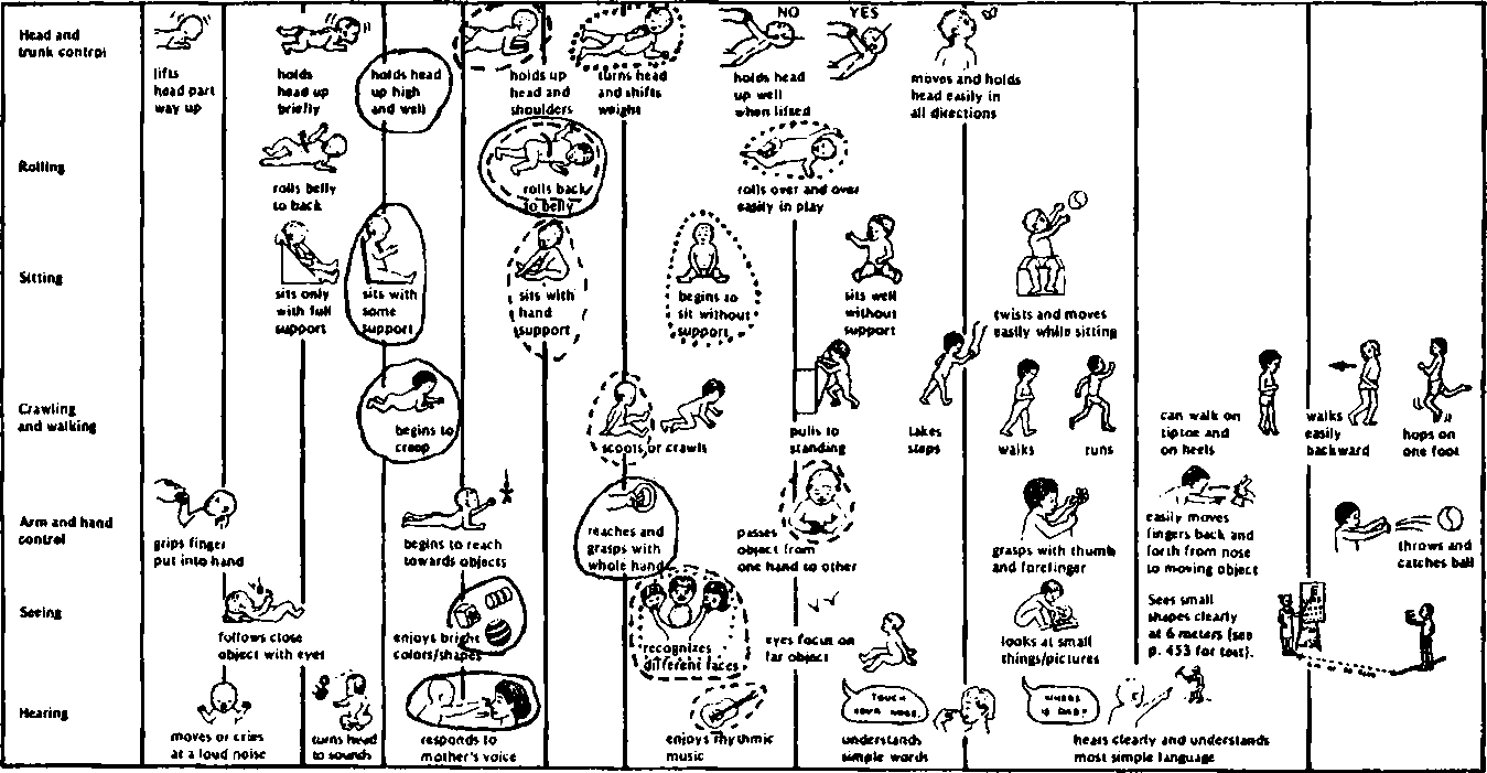 Physical therapy to improve control of the head, strength of the back, and use of both arms and hands together: