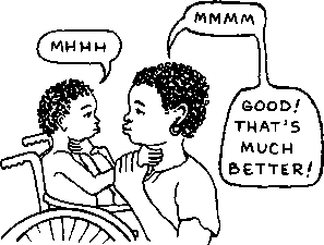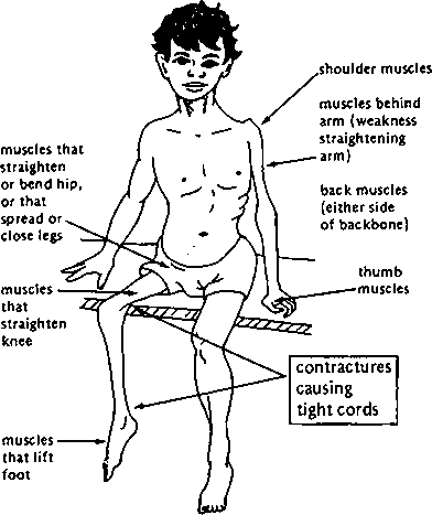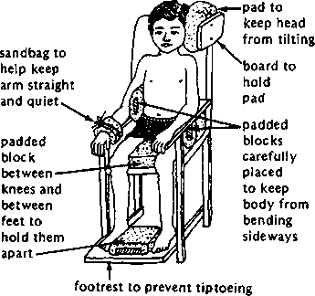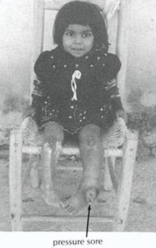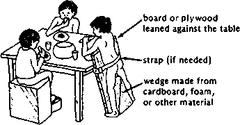 Depending on the interest and reading ability of the family, you may want to give them a whole chapter (or chapters) about their childs disability. For example, the chapters on cerebral palsy (Chapter 9) or deafness (Chapter 31). An older child who is paralyzed from a broken back might appreciate having a copy of the chapter on spinal cord injury. Letting him and his family take home the chapters on pressure sores and urine and bowel control could even save his life! His family may also want to take home plans for making a low-cost wheelchair, to see if the carpenter and blacksmith in their village could make one.