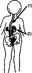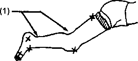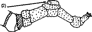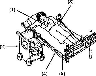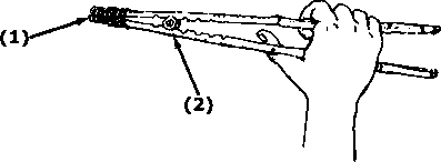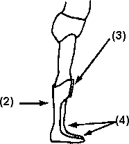 It usually works best to hold the cane on the side opposite the weaker leg. (1) Move forward and put down the weaker leg and the cane together. For different crutch and cane designs, see Chapter 63. |