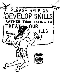 We mention this because when health professionals design community programs, often they try to put prevention first - and find that people do not show much interest. However, when a group of parents comes together to help their disabled children, after their immediate needs are being met, they may work hard for disability prevention.