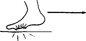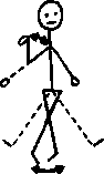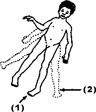 For better balance and position, move the right crutch forward together with the left leg, and then the left crutch together with the right leg. (1) Her tracks should look like this. (2)