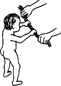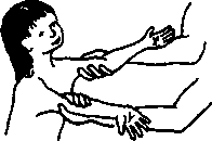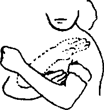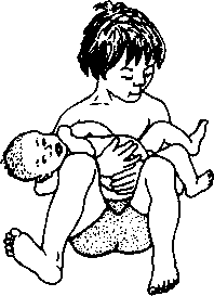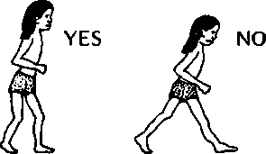 The elbow should be bent a little so that the child can lift herself up to swing her feet through. (1) |