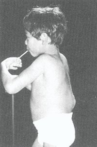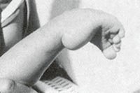 Her father noticed that she was beginning to walk on tiptoe, so he made special stirrups for the rocking horse. With these, when she rocked, her feet stretched up in a more normal position.