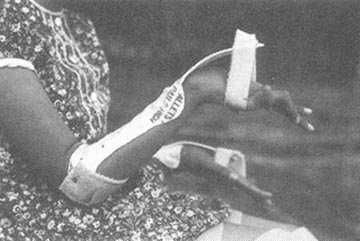 Her parents then visited a small rehabilitation center in a neighboring village. The village team suggested that they look for new ways to help Maricela keep her knees apart and improve control of her arms and hands - ways that would be exciting and help her to develop and practice useful skills together with the rest of her family. Here are some of the ideas that Maricela and her parents came up with: When she was good (and sometimes even if she was not) her father would let her help shell corn with him and the other children. Because she had trouble holding the corn and snapping off the grain with her fingers, her father made a special holder and scraper.
