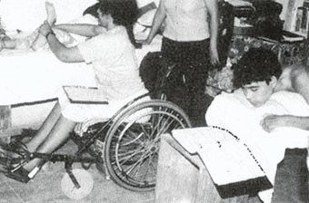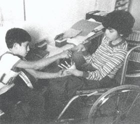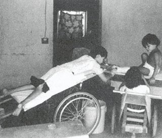 Two words often used by people who work with disabled persons are rehabilitation and therapy. Rehabilitation means returning of ability, or helping a disabled person to manage better at home and in the community. Therapy basically means treatment. Physical therapy - or physiotherapy-is the art of improving position, movement, strength, balance, and control of the body. Occupational therapy is the art of helping a disabled person learn to do useful or enjoyable activities. We speak of therapy as an art rather than a science because there are many different beliefs and approaches, and because the human feeling that goes into therapy is as important as the methods. |