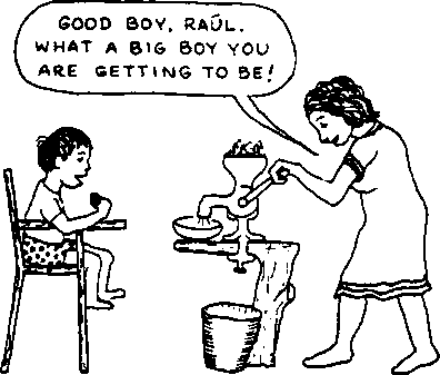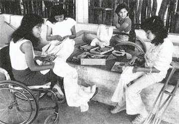 Maricelas family did just this. The basket of corn, the washing rock, the rocking horse, and the donkey all became therapy aids to help Maricela spread her spastic legs, and at the same time, to take part in the life of her family and community.