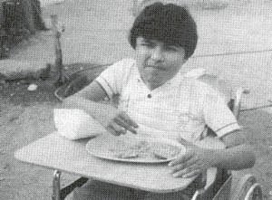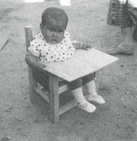 At first, while they were strange and new, Maricela used her special seat and played with her special toys. But soon, she got bored and stopped using them. She wanted to do the things that other children did. She wanted to go with her father and brother to the cornfield. She wanted to help her mother prepare food and wash the clothes. She wanted to be helpful and grown up. So she broke her special toys and refused - to sit in her special seat. Her parents were furious with her - and she loved it! She would sit for hours with her knees together and her legs bent back. Walking began to get more difficult for her, so she did not walk much.