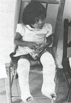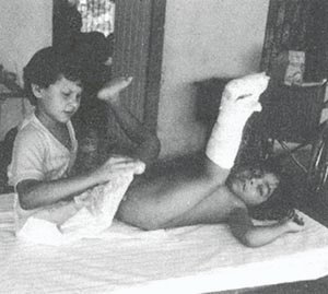 Her family saved money and took Maricela to a rehabilitation center in the city. After a long wait, a therapist examined her. He explained that Maricela needed to stretch the muscles on the inner side of her thighs, so her knees would not press together as much. He recommended that her parents do special exercises with her, and that they buy a special plastic seat to hold her knees wide apart.