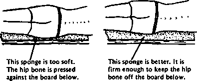 1. Place board under hip by leaning to opposite side or by pulling up leg. |