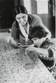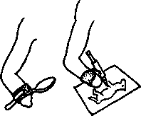 A child can also get squeezing exercise with the hands by milking goats, cutting with scissors or shears, punching holes in leather or paper with a hand punch (while making things), by washing and wringing clothes, and in many other ways.