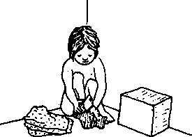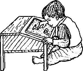 Perhaps some of the children or young people who are at the village center, either for rehabilitation or as learners-and-workers, can help trace drawings from the book. If they have some artistic skill, they can make the drawings larger, or make the child in the drawing look like the child that they are to be used with.*