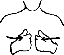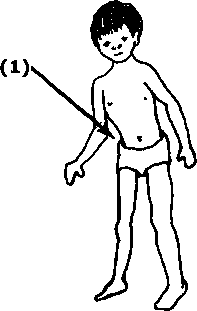 When the child stands, the crutch should be 2 or 3 fingers width below the armpit. |
