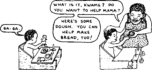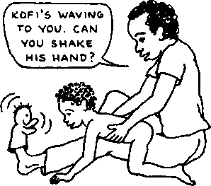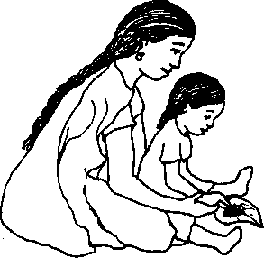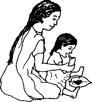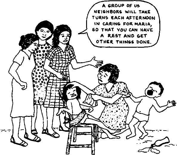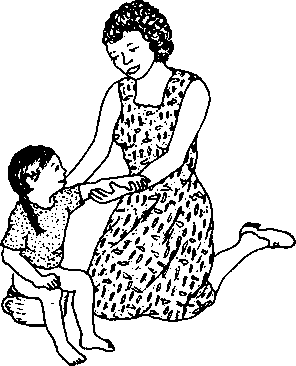 To the family of a young child who is slow to develop, you may want to give pages from the chapters on child development and early stimulation activities (Chapters 34 and 35). For a more advanced child you could give the family material from the chapters on self-care (Chapters 36 to 39).