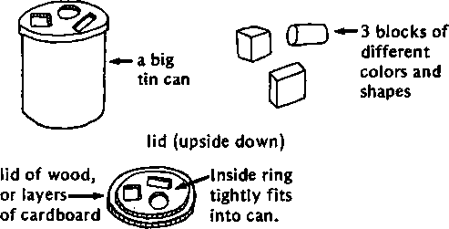 Later he made a better seat with pieces of wood, and an old bucket to hold her legs apart. Then, using a board, corn cobs and rings cut from bamboo, he added a small table so that she could play games to develop hand control.