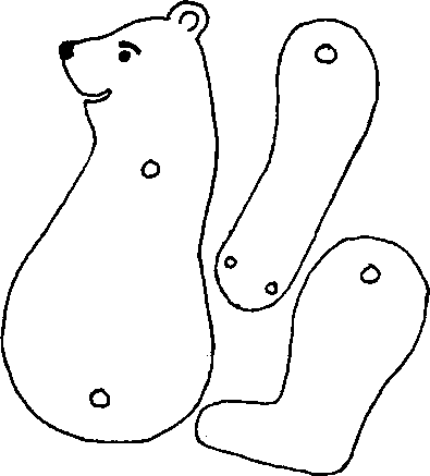 Trace and cut out these pieces from wood or cardboard. Fasten arms and legs loosely on body by putting a cord through holes.