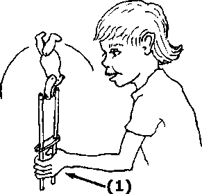 To have the child squeeze harder, attach a piece of rubber hose or car tire between the poles. (1)