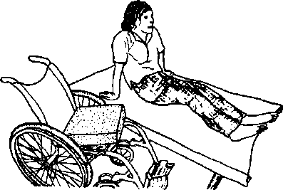 To transfer from the wheelchair to the cot, follow the same steps in reverse. | ||