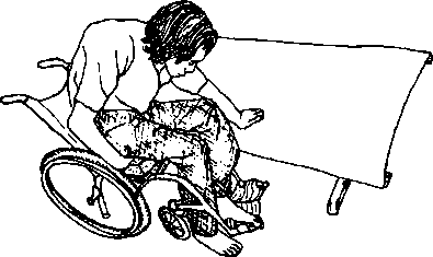 Transfer forward from wheelchair to cot or bed (often works well for children)
