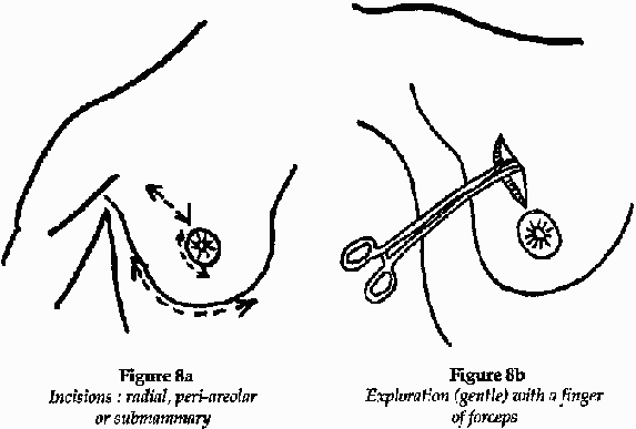 Have a gloved assistant using retractors if necessary. Be careful to exclude the following: