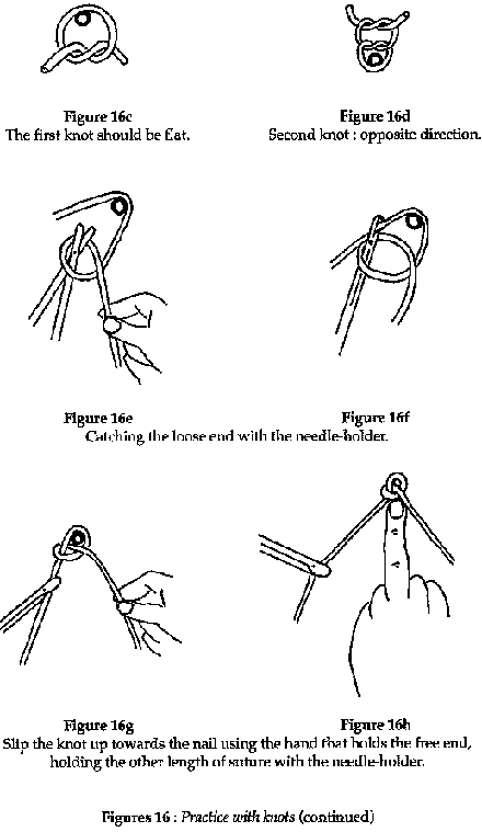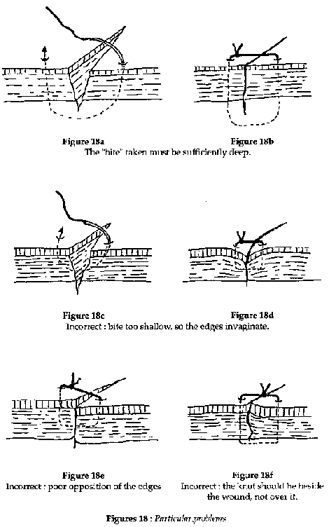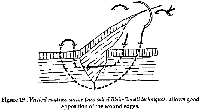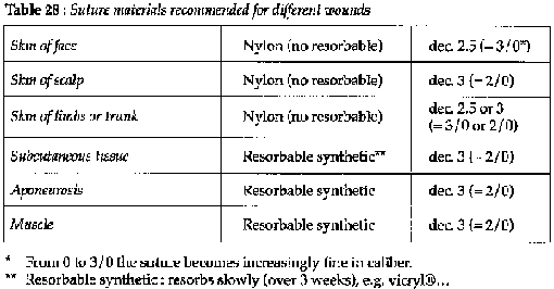 - Non-resorbable sutures such as silk for skin, resorbable thread (chromic catgut, Vicryl...) for subcutaneous tissues.