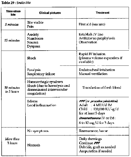 It is most often not possible to identify the snake reponsible. In any case, the principles of management are the same: first aid and supportive therapy as indicated from close monitoring of the victim's clinical condition. Antivenenes are costly, difflcult to store, difficult to use, sometimes dangerous (anaphylaxis), and moreover of arguable efficacy.