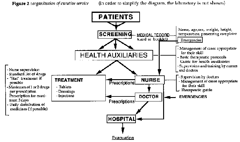 The health care program can be defined and carried out as soon as priorities have been defined, and health policy and local resources identified (e.g. essential drug list, MOH management protocols, medical personnel and their training and the medical structure).