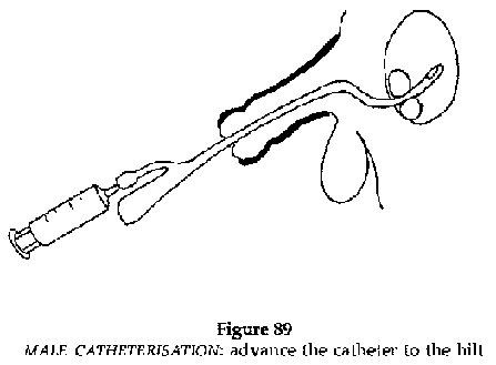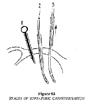 · Make a bubble in the skin with lidocaine a finger breadth above the symphysis pubis in the median line. Anesthetise the deep tissue planes (Figure 91).
