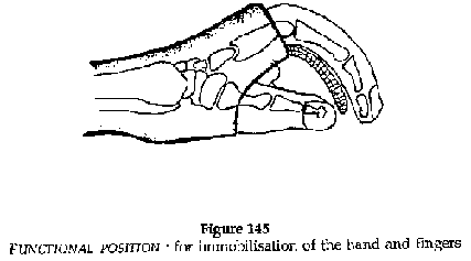 The hand and fingers should be immobilised in a functional position.